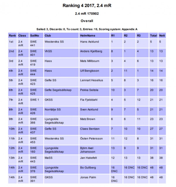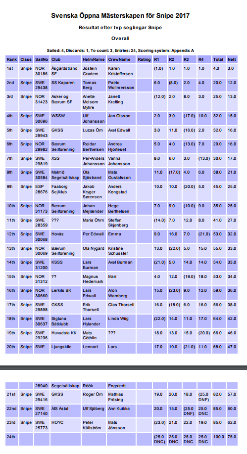 Resultat Snipe och 2.4 - lördag